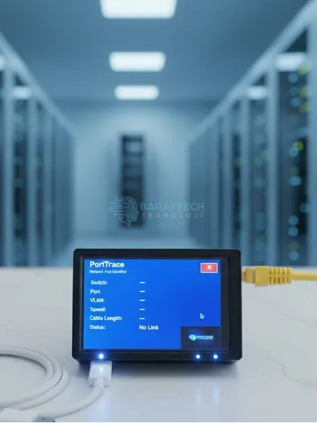 Baraytech Teknoloji tarafından geliştirilen PortTrace, kurumsal ağ altyapılarında fiziksel bağlantıların hızlı, doğru ve güvenilir şekilde tespit edilmesini sağlayan profesyonel bir port izleme yazılımıdır. PortTrace; data prizleri, patch paneller ve switch portları arasındaki ilişkiyi otomatik olarak analiz ederek, özellikle büyük ve dokümantasyonu eksik altyapılarda yaşanan zaman kaybı ve operasyonel hataları ortadan kaldırır. Temel Yetkinlikler Data prizinden switch portuna kadar uçtan uca bağlantı tespiti, LLDP / SNMP gibi endüstri standartları üzerinden güvenli iletişim. Fiziksel kablo takibi ve port doğrulama Bakım, arıza ve revizyon süreçlerinde hızlı keşif Kurumsal Avantajlar Arıza tespit ve müdahale sürelerinde ciddi zaman tasarrufu, Yanlış port, yanlış VLAN ve hatalı patchleme risklerinin azaltılması, CCTV, Wi-Fi ve data altyapılarında operasyonel verimlilik, Standartlara uygun, sürdürülebilir ağ yönetimi Ağ Performansına Etkisi PortTrace, yalnızca yönetim protokolleri üzerinden düşük hacimli veri alışverişi yapar. Bu sayede bant genişliği kullanımı ihmal edilebilir seviyededir ve mevcut ağ trafiği üzerinde herhangi bir performans kaybına neden olmaz.